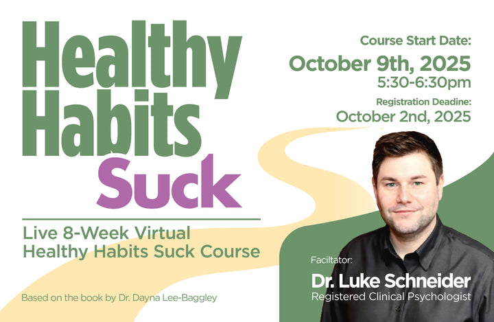 Dr. Luke Schneider is a Registered Clinical Psychologist who completed his M.A. and Ph.D. at the University of Regina. He completed his predoctoral residency with Nova Scotia Health and also completed a two-year Postdoctoral Fellowship at the Anxiety Treatment and Research Clinic at St. Joseph's Healthcare Hamilton. Dr. Schneider has experience in the assessment and treatment of mental health disorders including healthy anxiety, depression, and posttraumatic stress disorder. Additionally, Dr. Schneider has specialized experience in the psychological treatment of health-related conditions such as chronic pain, COPD, cancer, and kidney failure. Dr. Schneider is very excited to share his psychological knowledge in the upcoming Healthy Habits Suck course.